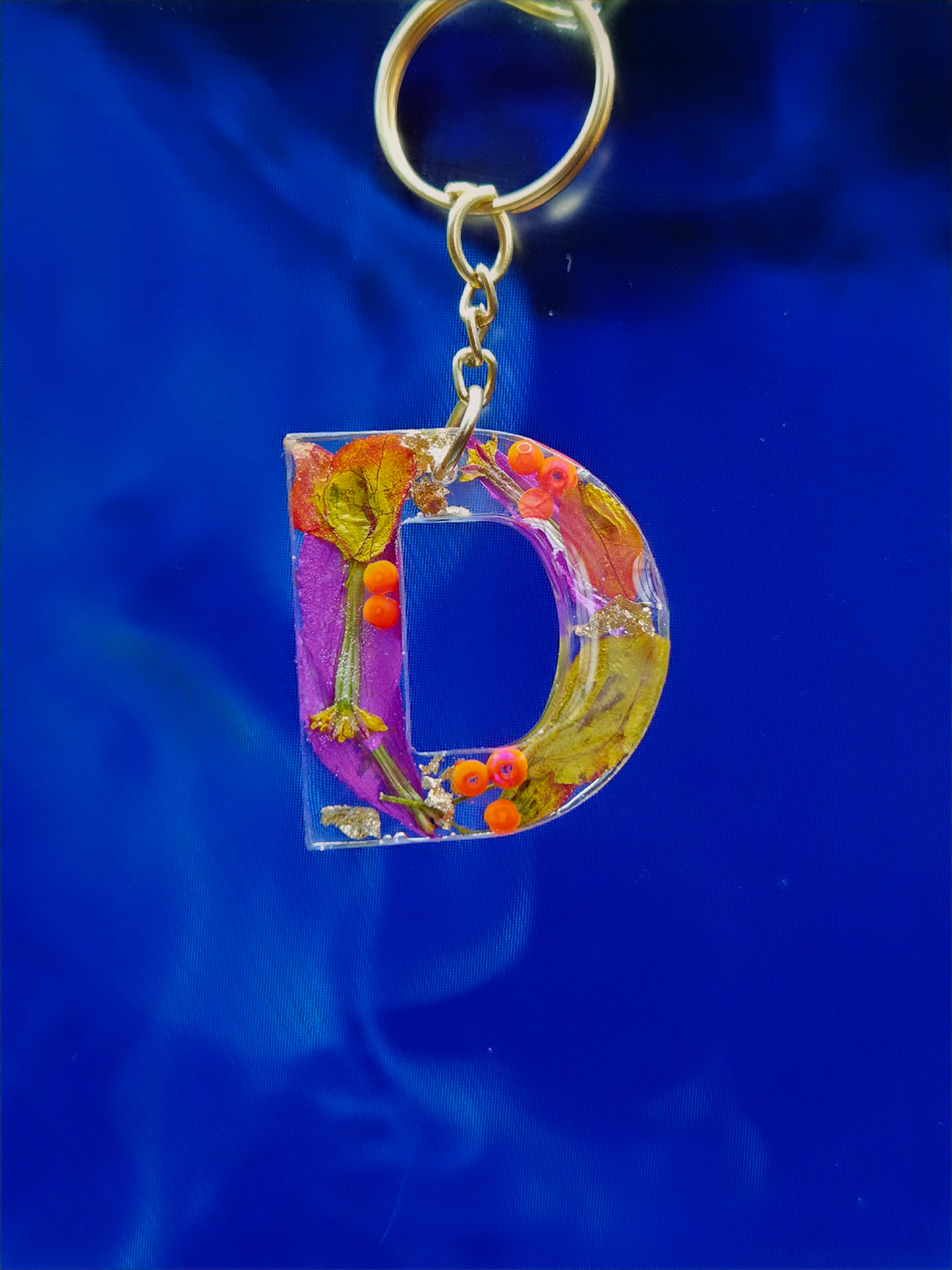 The D Letter Keychain is a handcrafted initial keychain made in Hyderabad, perfect as a personalised gift for anyone whose name begins with D. Each piece is carefully poured in UV-cured epoxy resin, embedding swirls of colour, glitter, or dried flowers depending on the variant you choose. The letter is set into our own 3D-printed mold — a design exclusive to Dastaan. Unlike mass-produced acrylic keychains, this one is made to order, meaning every batch is slightly unique. It pairs beautifully with a matching bag, tote, or keyring as a birthday gift, anniversary gift, or wedding favour. Materials used are non-toxic, scratch-resistant, and durable for daily use. Handmade with care in small batches. Production time is 3-5 days. We share a progress photo before shipping. Ships pan-India via courier in a gift-ready box.